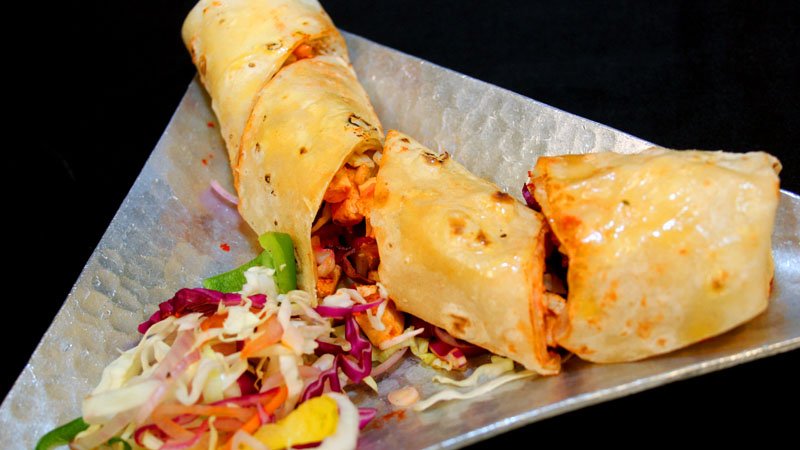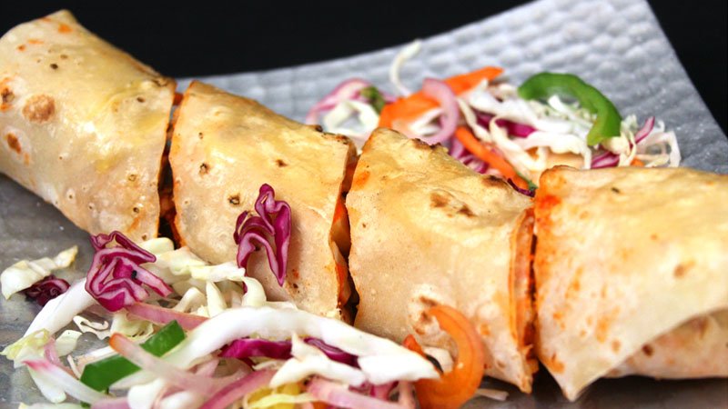 Cottage cheese grilled in Tandoor and wrapped in Romali roti (a thin bread