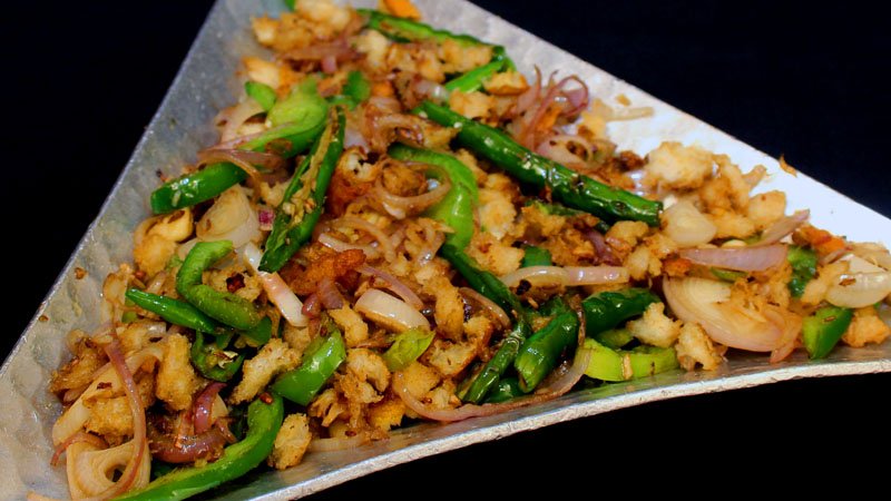 Popular Indo Chinese starter made by seasoning fried Indian cottage cheese