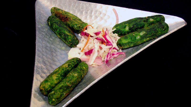 Pan fried minced vegetable fingers with spinach & cheddar cheese