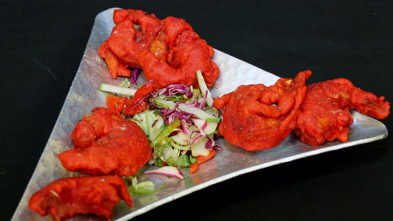 in a flavorful spicy sauce made with soy sauce, chilli sauce & vinegar