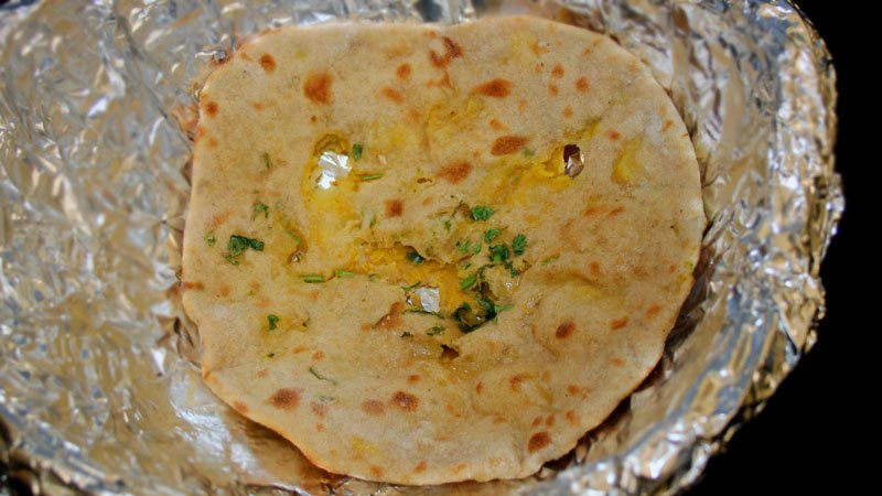 ALOO PARATHA Delhi's famous street side specialty made from whole wheat flour stuffed with potato & spices