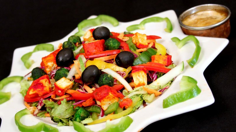 Tandoori paneer mix with five vegetables and olives