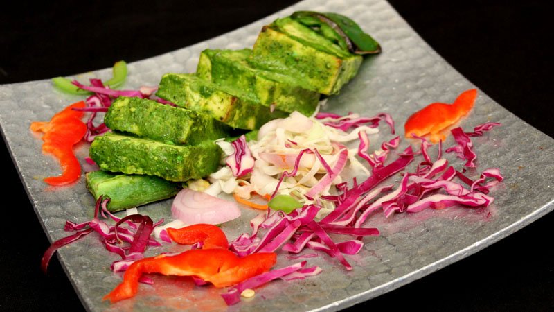 PANEER PUDINA TIKKA  Cottage cheese marinated with mint & other spices grilled in a Tandoor