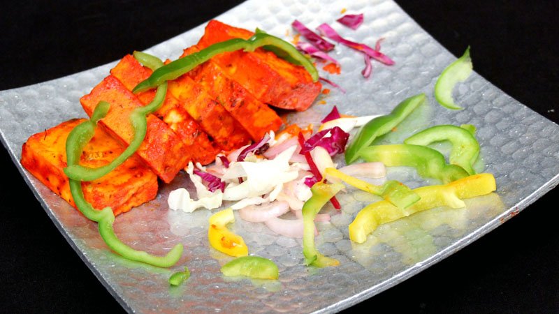 PANEER TIKKA Cottage cheese marinade in spices & grilled in a Tandoor