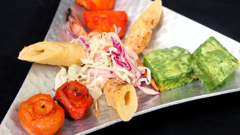 VEGETARIAN KEBAB PLATTER A grilled delightful mixture of paneer tikka, tandoori mushrooms,